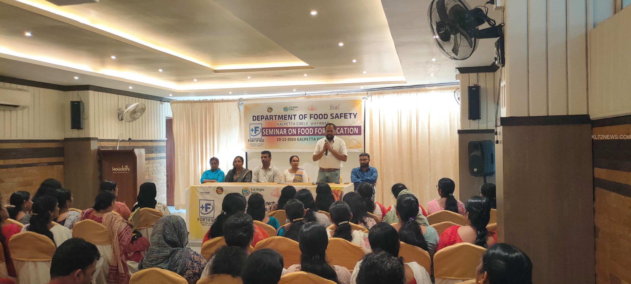 കൽപ്പറ്റ: ഭക്ഷ്യസുരക്ഷാ വകുപ്പും കുടുംബശ്രീ മിഷനും സംയുക്തമായി എഫ്എൻഎച്ച്ഡബ്ലു പദ്ധതിയുടെ ഭാഗമായി ഫുഡ് ഫോർട്ടിഫിക്കേഷൻ എന്ന വിഷയത്തിൽ സെമിനാർ സംഘടിപ്പിച്ചു. ശരീരത്തിന് ആവശ്യമായ പോഷകങ്ങൾ മികച്ച ഭക്ഷണ രീതിയിലൂടെ എങ്ങനെ സാധ്യമാക്കാം എന്നും ഫുഡ് ഫോർട്ടിഫിക്കേഷൻ അതിനെ എങ്ങനെ സഹായിക്കുമെന്നതുമാണ് സെമിനാറിൽ ചർച്ച ചെയ്തത്. ഭക്ഷണത്തിലെ പോഷകമൂല്യം മെച്ചപ്പെടുത്തുന്നതിന് വിറ്റാമിനുകളും ധാതുക്കളും ചേർക്കുന്ന രീതിയാണ് ഫുഡ് ഫോർട്ടിഫിക്കേഷൻ. ജില്ലയിലെ 10 ന്യൂട്രി മിക്സ് യൂണിറ്റ് അംഗങ്ങൾ ഉൾപ്പെടെ 63 പേർ കല്പറ്റ ഹോളിഡേയ്സിൽ വെച്ച് സംഘടിപ്പിച്ച ഏകദിന സെമിനാറിൽ പങ്കെടുത്തു. ഫുഡ് ഫോർട്ടിഫിക്കേഷന്റെ ആവശ്യകതയും ഫോർട്ടിഫിക്കേഷനിൽ ശ്രദ്ധിക്കേണ്ട കാര്യങ്ങൾ എന്തൊക്കെയാണെന്നും ഇത് എങ്ങനെ ഫലപ്രദമായി സാധ്യമാക്കാം എന്നതിനെക്കുറിച്ചും സംസാരിച്ചു.