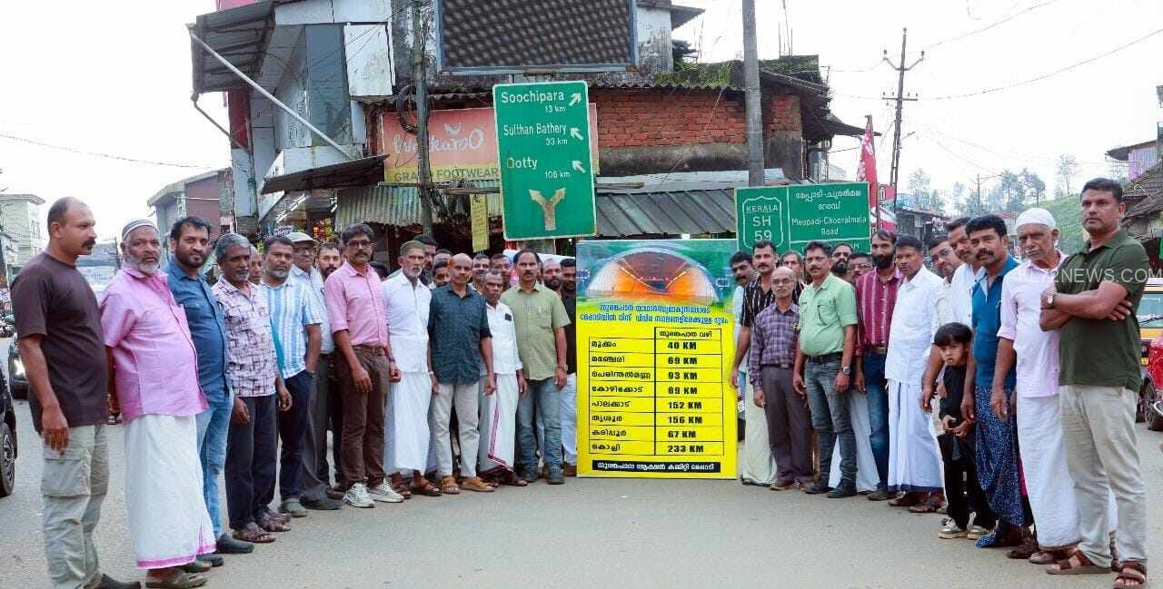 തുരങ്ക പാത കർമ്മ സമ്മിതി പ്രവർത്തകരുടെ നേതൃത്വത്തിൽ പ്രകടനമായി എത്തിയാണ് ബോർഡ് സ്ഥാപിച്ചത്.