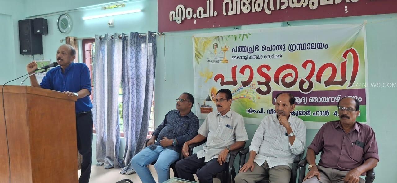 എം.പി. വീരേന്ദ്രകുമാർ ഹാളിൽ നടന്ന പരിപാടിയിൽ അഡ്വ. എസ്. എ. നസീർ മുഖ്യതിഥിയായി. ഗ്രന്ഥലയം വൈസ് പ്രസിഡന്റ് ഇ. ശേഖരൻ അധ്യക്ഷത വഹിച്ചു. പാട്ടരുവി കൺവീനർ എസ്.സി. ജോൺ, വി.കെ. സജികുമാർ, പി.എം. കൃഷ്ണൻ എന്നിവർ സംസാരിച്ചു.