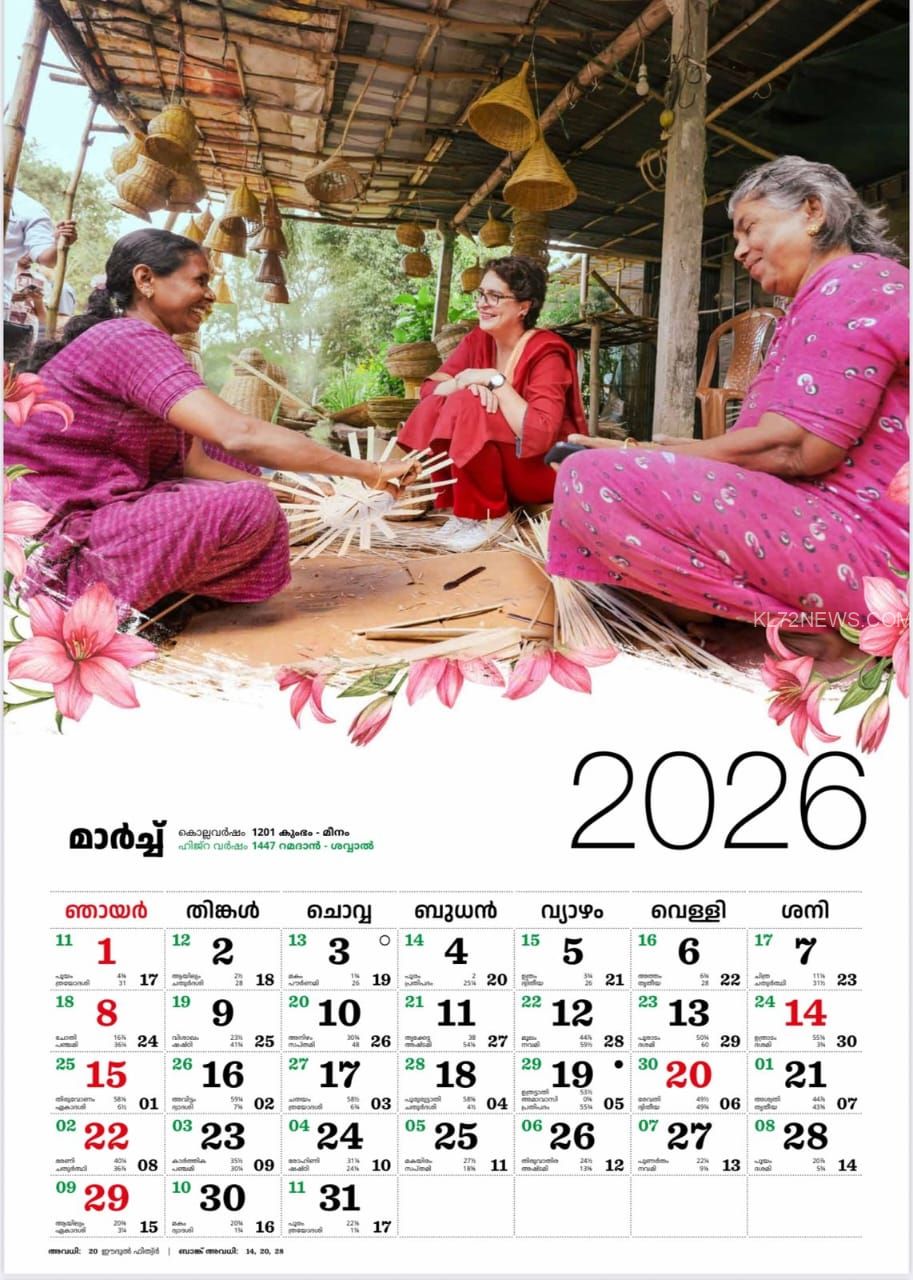 കല്പറ്റ: വയനാടിനെ പ്രമേയമാക്കി പ്രിയങ്ക ഗാന്ധി എം.പി.യുടെ പുതുവത്സര സമ്മാനമായി കലണ്ടർ പുറത്തിറക്കി. എം.പി.ആയതിനു ശേഷം പ്രിയങ്ക ഗാന്ധി നടത്തിയ ഇടപെടലുകളുമായി ബന്ധപ്പെട്ട ചിത്രങ്ങൾ ഉൾപ്പെടുത്തിയാണ് കലണ്ടർ. മുക്കം മണാശേരി ശ്രീ കുന്നത്ത് മഹാവിഷ്ണു ക്ഷേത്രത്തിൽ പ്രിയങ്ക ഗാന്ധി എം.പി. നടത്തിയ തുലാഭാരം വഴിപാടിന്റെ ചിത്രമാണ് ജനുവരി മാസത്തിന്റെ മുഖചിത്രം. കരുളായിയിൽ കാട്ടാന ആക്രമണത്തിൽ കൊല്ലപ്പെട്ട മണിയുടെ സഹോദരൻ അയ്യപ്പന്റെ കൈ പിടിച്ച് നിലമ്പൂർ ചോലനായ്ക്കർ ഉന്നതിയിൽ നടക്കുന്ന ചിത്രമാണ് ഫെബ്രുവരി മാസത്തേത്. നൂൽപ്പുഴയിൽ കുടുംബശ്രീ സംരംഭമായ വനദുർഗ മുള ഉത്പന്ന കേന്ദ്രത്തിൽ സരസ്വതി കൊട്ട നെയ്യുന്നത് കൗതുകത്തോടെ നോക്കി പഠിക്കുന്ന പ്രിയങ്ക ഗാന്ധിയുടെ ചിത്രവും ചെറുവയൽ രാമനോടൊപ്പം കൃഷിയിടത്തിൽ നടക്കുന്ന ചിത്രവുമെല്ലാം ഓരോ മാസത്തിലെ കലണ്ടറിൽ ഉൾപ്പെടുത്തിയിട്ടുണ്ട്. കല്പറ്റ ഹ്യൂം സെന്ററിൽ മേപ്പാടി ദുരന്തത്തിന്റെ പശ്ചാത്തലത്തിൽ ആശയവിനിമയം നടത്തിയപ്പോഴുള്ള ചിത്രവും മുത്തങ്ങ വന്യമൃഗ സങ്കേതത്തിൽ ഡോ. അരുൺ സക്കറിയയുടെ നേതൃത്വത്തിലുള്ള ആർ. ആർ. ടി. സംഘവുമായി ആശയവിനിമയം നടത്തിയ ശേഷം ആനയ്ക്ക് ഭക്ഷണം നൽകുന്ന ചിത്രങ്ങളും ഉൾപ്പെടുത്തിയിരിക്കുന്നു.