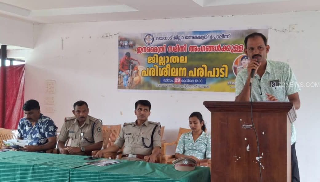 ജില്ലാ ജനമൈത്രി പോലീസിന്റെ നേതൃത്വത്തില്ജനമൈത്രി സമിതി അംഗങ്ങള്ക്കായി പരിശീലന പരിപാടി സംഘടിപ്പിച്ചു. പനമരം ഗ്രാമപഞ്ചായത്ത് കമ്മ്യൂണിറ്റി ഹാളില് നടന്ന പരിപാടി ഡി.സി.ആര്.ബി ഡി.വൈ.എസ്.പി അബ്ദുള് കരീം ഉദ്ഘാടനം ചെയ്തു. ജനമൈത്രി പദ്ധതികള്, കേരള പോലീസിന്റെഡി -ഡാഡ് പദ്ധതി സംബന്ധിച്ച് ക്ലാസുകള് നടന്നു. ജില്ലാ ജനമൈത്രി പോലീസ്അസിസ്റ്റന്റ് നോഡല് ഓഫീസര് കെ.എം ശശിധരന് അധ്യക്ഷനായ പരിശീലന പരിപാടിയില് എസ്.പി.സി അസിസ്റ്റന്റ് നോഡല് ഓഫീസര് കെ. മോഹന്ദാസ്, പനമരം പോലീസ് സ്റ്റേഷന് സബ് ഇന്സ്പെക്ടര് സന്തോഷ് മോന്, അസിസ്റ്റന്റ് സബ് ഇന്സ്പെക്ടര് രഞ്ജിത സുമം, റിട്ട. പോലീസ് സൂപ്രണ്ട് പ്രിന്സ് എബ്രഹാം, ഡി – ഡാഡ് കൗണ്സിലര്അനുശ്രീ, ഹോപ് പദ്ധതി കോ- ഓര്ഡിനേറ്റര് ദീപ, വിവിധ പോലീസ് സ്റ്റേഷന് പരിധിയികളിലെ ജനമൈത്രി സമിതി അംഗങ്ങള് എന്നിവര് പങ്കെടുത്തു
