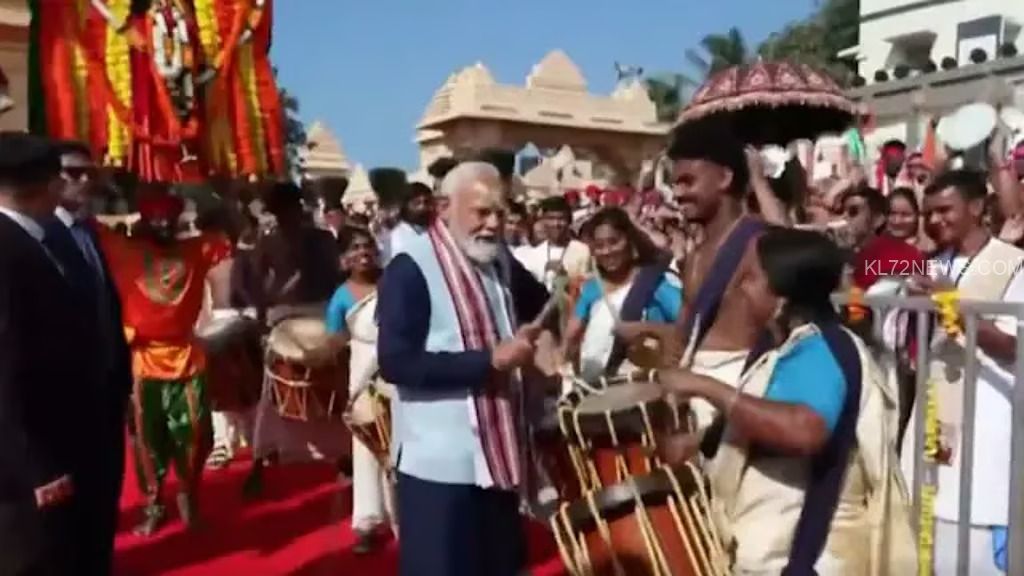 അഹമ്മദാബാദ്: ഗുജറാത്തിലെ സോമനാഥ ക്ഷേത്രത്തിലെ ആത്മീയ പരിപാടിയായ സോമനാഥ് സ്വാഭിമാന് പര്വ്വില് പങ്കെടുത്ത് പ്രധാനമന്ത്രി നരേന്ദ്ര മോദി. സ്വീകരണത്തിനായി ഒരുക്കിയ സാംസ്കാരിക പരിപടികളിലും മോദി പങ്കെടുത്തു. മോദി നടന്നു നീങ്ങിയ വഴിയില് ഉണ്ടായിരുന്ന ചെണ്ടമേളക്കാര്ക്കൊപ്പം പ്രധാനമന്ത്രിയും ചേര്ന്നു. സ്ത്രീകള് ഉള്പ്പെട്ട സംഘത്തിന് ഒപ്പമായിരുന്നു മോദി പങ്കാളിയായത്. സംഘത്തിലുണ്ടായിരുന്ന കലാകാരനില് നിന്നും ചെണ്ടക്കോല് വാങ്ങിയാണ് ചെണ്ടയില് താളമിട്ടത്.