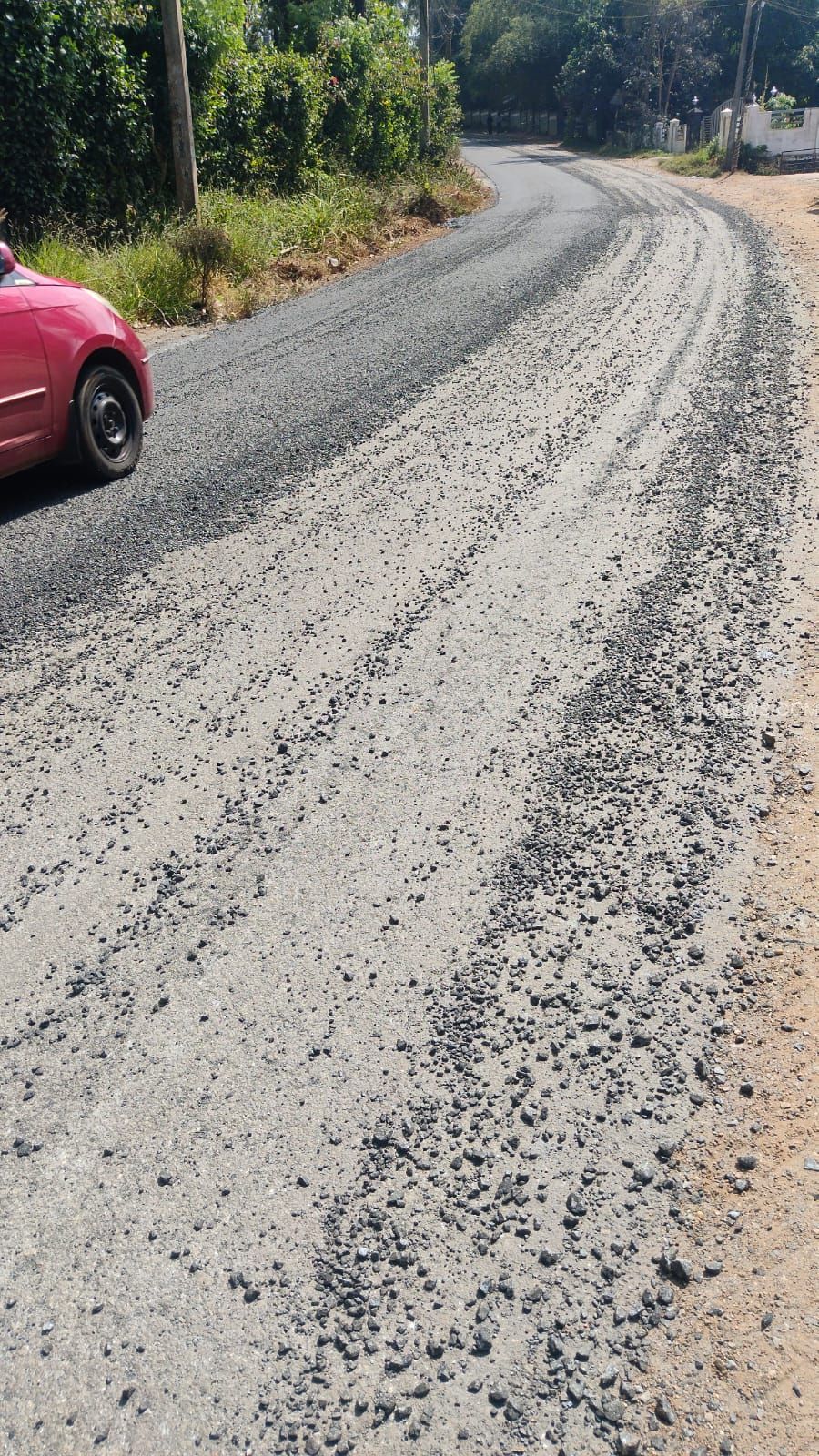 കഴിഞ്ഞ ദിവസമാണ് റോഡിന്റെ പ്രവൃത്തി നടന്നത്. ഒരു ദിവസം പോലും തികയുന്നതിന് മുൻപ് തന്നെ പലയിടങ്ങളിലും ടാർ വേർപെട്ട് മെറ്റലുകൾ നിരനിരയായി ചിതറിക്കിടക്കുകയാണ്. ഇരുചക്ര വാഹനങ്ങൾ മെറ്റലിൽ തെന്നി വീണ് അപകടങ്ങൾ സംഭവിക്കുന്നത് പതിവായിട്ടുണ്ട്.