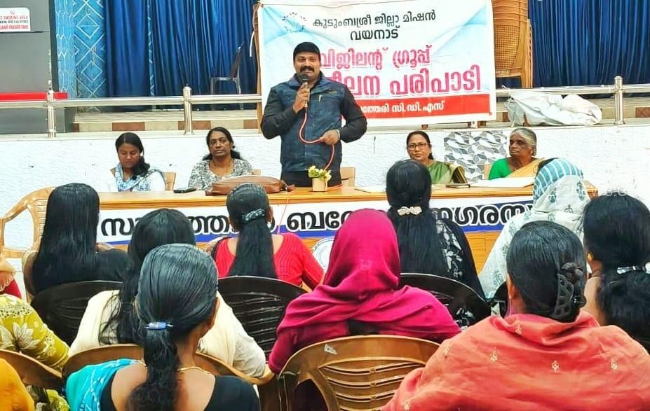 ബത്തേരി : കുടുംബശ്രീയുടെ നേതൃത്വത്തിൽ പ്രാദേശിക തലത്തിൽ സ്ത്രീ-സുരക്ഷ ഉറപ്പാക്കാൻ പ്രവർത്തിക്കുന്ന സന്നദ്ധ സേവന വിഭാഗമായ വിജിലന്റ് ഗ്രൂപ്പിന് എക്സൈസ് സംസ്ഥാന ലഹരി വർജന മിഷൻ വിമുക്തിയുടെ പ്രത്യേക പരിശീലനം നൽകി. ലഹരി മുക്ത നവ കേരളം കെട്ടിപ്പടുക്കുക,സ്ത്രീ-ശിശു സൗഹൃദ അന്തരീക്ഷം സൃഷ്ടിക്കുക, അതിക്രമങ്ങൾ തടയുക, ആവശ്യമുള്ളവർക്ക് കൗൺസിലിങ്ങും മറ്റു സഹായങ്ങളും നൽകുക മുതലായവയാണ് പരിശീലന പരിപാടിയുടെ പ്രധാന ലക്ഷ്യങ്ങൾ. ബത്തേരി നഗരസഭാ ഹാളിൽ നടന്ന പരിപാടിയിൽ എക്സൈസ് വിമുക്തി മിഷൻ വയനാട് ജില്ല കോർഡിനേറ്റർ എൻ.സി.സജിത്ത്കുമാർ അച്ചൂരാനം പരിശീലന പരിപാടിക്ക് നേതൃത്വം നൽകി. സി.ഡി.എസ് അംഗങ്ങൾ, അയൽക്കൂട്ട ഭാരവാഹികൾ മുതലായവർ പരിശീലനത്തിൽ പങ്കെടുത്തു. സി.ഡി.എസ്. ചെയർപഴ്സൺ സാറാമ്മ പോൾ അധ്യക്ഷത വഹിച്ചു. ബത്തേരി നഗരസഭ ക്ഷേമകാര്യ സ്റ്റാൻഡിങ് കമ്മിറ്റി ചെയർ പഴ്സൺ ലീല പാൽപ്പാത്ത് ഉദ്ഘാനം നിർവഹിച്ചു.