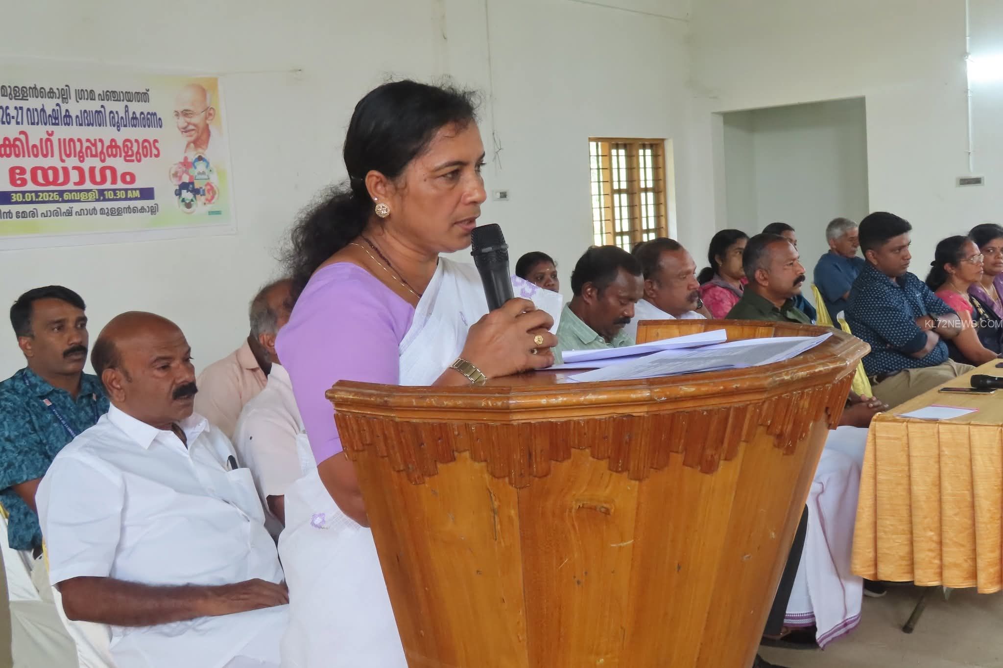 മുള്ളന്കൊല്ലി: പതിനാലാം പഞ്ചവത്സരപദ്ധതിയുടെ അവസാന വർഷത്തേക്കുള്ള പദ്ധതികള് തയ്യാറാക്കുന്നതുമായി ബന്ധപ്പെട്ട് മുള്ളന്കൊല്ലി ഗ്രാമ പഞ്ചായത്തില് വർക്കിംഗ് ഗ്രൂപ്പുകളുടെ യോഗങ്ങള് ചേർന്ന് മുന്ഗണ നല്കേണ്ട വിഷയമേഖലകള് തീരുമാനിച്ച് കരട് പദ്ധതി നിർദ്ദേശങ്ങള് തയ്യാറാക്കി. ഈ നിർദ്ദേശങ്ങള് അടുത്ത ദിവസങ്ങളിലായി വിളിച്ച് ചേർക്കുന്ന ഗ്രാമ സഭകളില് ആവതരിപ്പിക്കും . ഗ്രാമ പഞ്ചായത്തിലെ ജനങ്ങളുടെ ജീവിതനിലവാരം ഉയർത്തുന്നതിനും, പഞ്ചായത്തിന്റെ ഘടക സ്ഥാപനങ്ങളുടെ സേവനം മെച്ചപ്പെടുത്തുന്നതിനും, ഉല്പാദനമേഖലയോടൊപ്പം തന്നെ പശ്ചാത്തല സൌകര്യവികസന പ്രവർത്തനങ്ങള്ക്കും മുന്ഗണന നല്കുമെന്ന് യോഗം ഉദ്ഘാടനം ചെയ്തുകൊണ്ട് ഗ്രാമ പഞ്ചായത്ത് പ്രസിഡന്റ് ലിസ്സി സാബു പറഞ്ഞു. പതിമൂന്ന് വർക്കിംഗ് ഗ്രൂപ്പുകളായി തിരിഞ്ഞ് വിവിധ മേഖലകളിലെ പ്രശനങ്ങളും പരിഹാരമാർഗ്ഗങ്ങളും ചർച്ച ചെയ്ത് കരട് നിർദ്ദേശങ്ങള് അവതരിപ്പിച്ചു. സംസ്ഥാന സർക്കാർ മുഖ്യപരിഗണന നല്കുന്ന വിഷയങ്ങളോടൊപ്പം പ്രാദേശിക വികസനത്തിന് ഉതകും തരത്തിലുള്ള നിർദ്ദേശങ്ങളും പദ്ധതിയുടെ ഭാഗമാക്കും. ആസൂത്രണ സമിതി ഉപാധ്യക്ഷന് കെ.സി തോമസ് സ്വാഗതം പറഞ്ഞു, വൈസ് പ്രസിഡന്റ് ഷിനു കച്ചിറയില് അധ്യക്ഷത വഹിച്ചു. സെക്രട്ടറി അശ്വിന് ആർ.എസ് വിഷയാവതരണം നടത്തി. അക്കൌണ്ടന്റ് അനീഷ് രാജ് നന്ദി പറഞ്ഞു