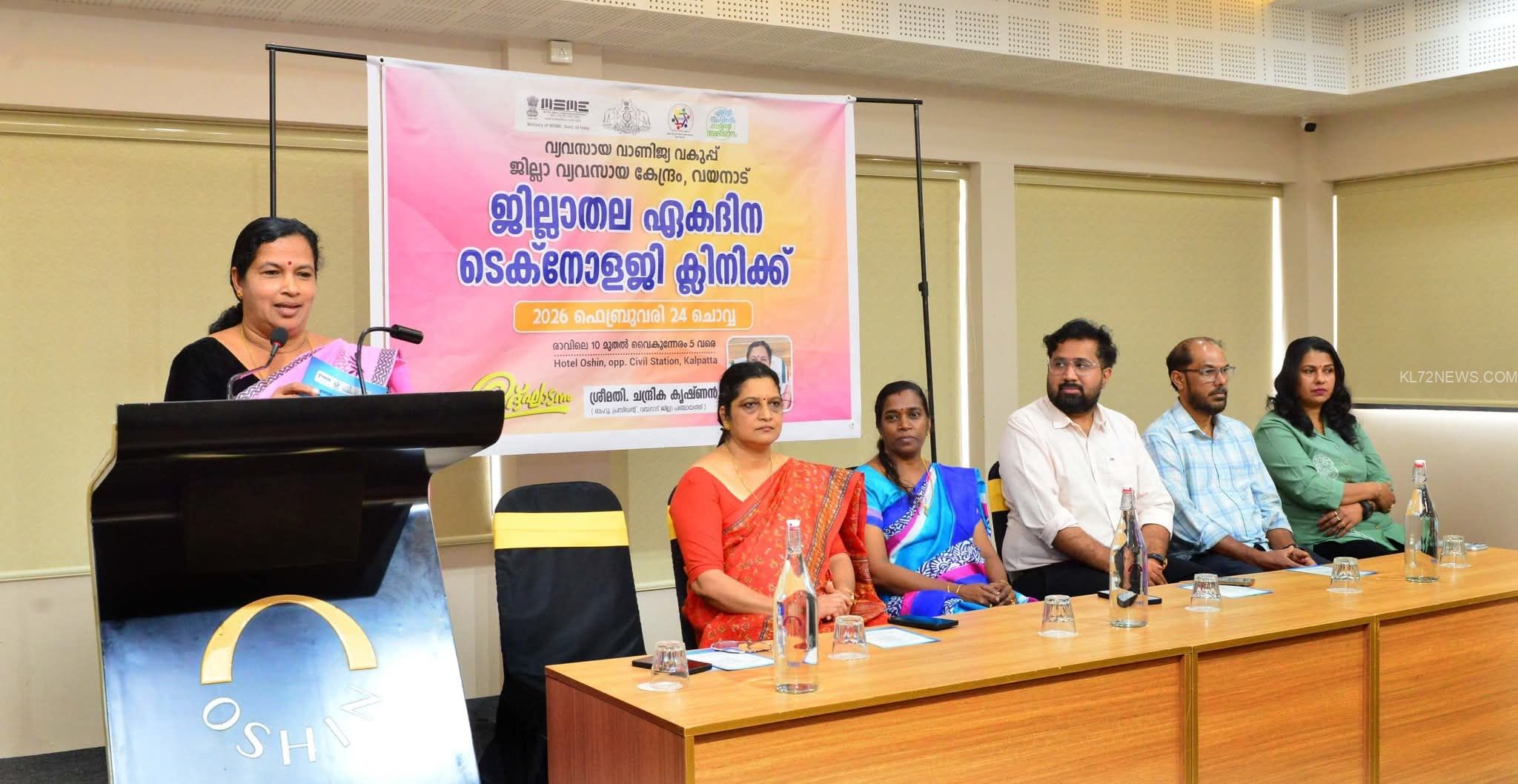 ജില്ലാ വ്യവസായ കേന്ദ്രത്തിന്റെ ആഭിമുഖ്യത്തില് ഏകദിന ടെക്നോളജി ക്ലിനിക്ക് സംഘടിപ്പിച്ചു. കല്പ്പറ്റ ഓഷ്യന് ഹോട്ടലില് നടന്ന ടെക്നോളജി ക്ലിനിക്ക് ജില്ലാ പഞ്ചായത്ത് പ്രസിഡന്റ് ചന്ദ്രിക കൃഷ്ണന് ഉദ്ഘാടനം ചെയ്തു. ബ്യൂട്ടി ടെക്നിക്കില്, ഹെയര് എക്സ്റ്റന്ഷന്, എക്സ്റ്റന്ഷന് കെയര് ടിപ്പുകള്, ട്രെന്ഡിങ് ഹെയര് സ്റ്റൈല് എന്നിവയില് വിദഗ്ധര് പരിശീലനം നല്കി. ഉദ്ദ്യം പേര്ട്ടലില് രജിസ്റ്റര് ചെയ്ത സംരംഭകരാണ് പരിപാടിയില് പങ്കെടുത്തത്. ജില്ലാ വ്യവസായ കേന്ദ്രം ജനറല് മാനേജര് കെ.എ ജിഷ അധ്യക്ഷയായ പരിപാടിയില് ജില്ലാ വ്യവസായ കേന്ദ്രം അസിസ്റ്റന്റ് ഡയറക്ടര് അശ്വിന് പി കുമാര്, ജില്ലാ വ്യവസായ കേന്ദ്രം മാനേജര് (ക്രഡിറ്റ്) പി.എസ് കലാവതി, അസിസ്റ്റന്റ് ജില്ലാ വ്യവസായ ഓഫീസര് മുഹമ്മദ് നയിം, കോസ്മെറ്റോളജിസ്റ്റ് കെ.രജനി എന്നിവര് സംസാരിച്ചു.