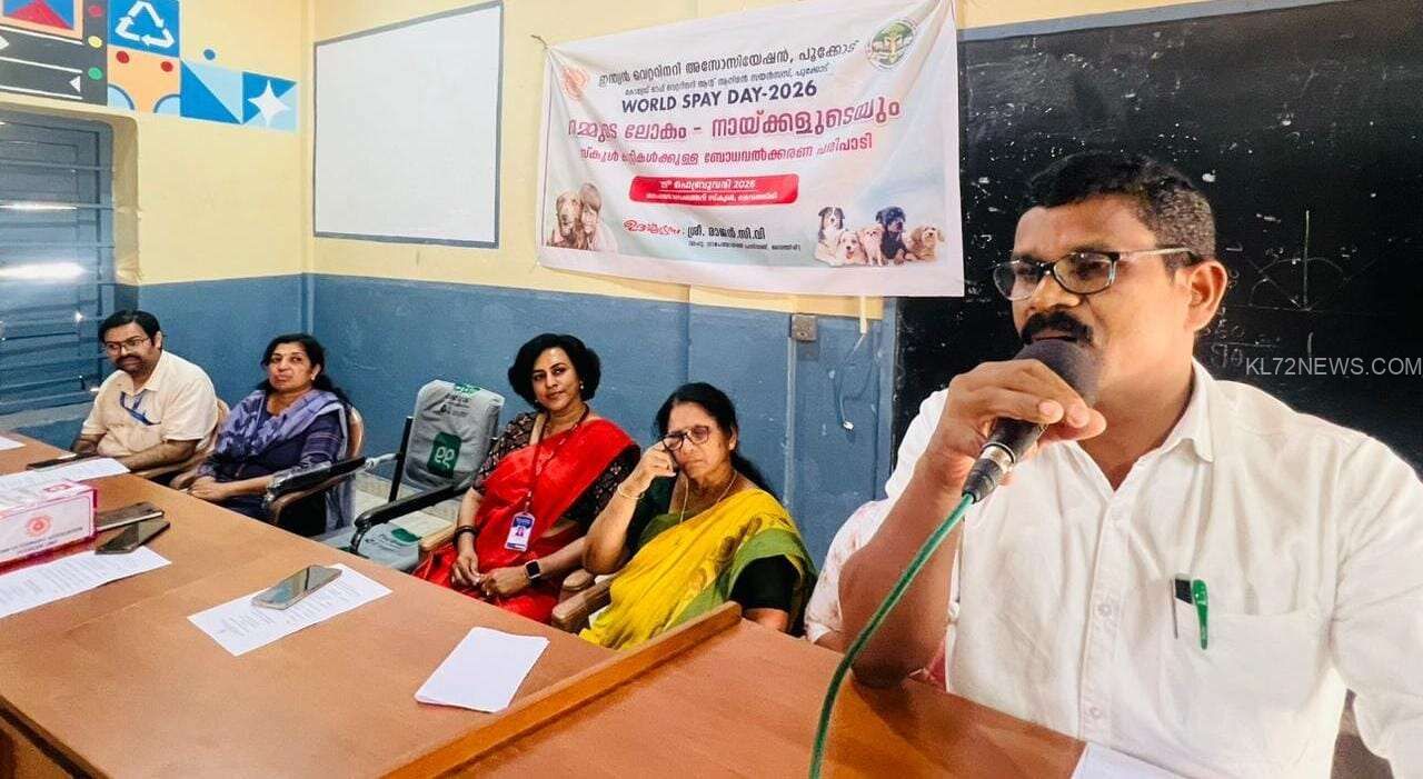 വൈത്തിരി :ഇന്ത്യൻ വെറ്ററിനറി അസോസിയേഷൻ, വെറ്ററിനറി കോളേജ് പൂക്കോടിന്റെ ആഭിമുഖ്യത്തിൽ, World SPAY DAY (ഓമന മൃഗങ്ങളുടെ വന്ധീകരണം) ആചരണത്തിന്റെ ഭാഗമായി വൈത്തിരി ഗവ. ഹയർ സെക്കൻഡറി സ്കൂളിലെ കുട്ടികൾക്കായി ‘നമ്മുടെ ലോകം – നായ്ക്കളുടെയും ” എന്ന വിഷയത്തിൽ ബോധവൽക്കരണ ക്ലാസ് സംഘടിപ്പിച്ചു . ഇന്ത്യൻ വെറ്ററിനറി അസോസിയേഷൻ പൂക്കോട് പ്രസിഡന്റ്, ഡോ. ബിന്ദ്യ ലിസ് എബ്രഹാം അധ്യക്ഷത വഹിച്ച ചടങ്ങിൽ സെക്രട്ടറി ഡോ. ഹർഷാദ് പട്കി സ്വാഗതമോതി. വൈത്തിരി പഞ്ചായത്ത് പ്രസിഡന്റ് സി.വി.രാജൻ ഉദ്ഘാടനം ചെയ്തു. സ്കൂൾ പ്രധാനാധ്യാപിക സി കെ പ്രിയരഞ്ജിനി മുഖ്യപ്രഭാഷണം നടത്തി. വൈത്തിരി പഞ്ചായത്ത് ആരോഗ്യ – വിദ്യാഭ്യാസ സ്റ്റാൻഡിങ് കമ്മിറ്റി ചെയർപേഴ്സൺ എൽസി ജോർജ്, വാർഡ് മെമ്പർ ജെസ്ന എന്നിവർ ആശംസയർപ്പിച്ചു സംസാരിച്ചു. നൂറോളം കുട്ടികളെ പങ്കെടുപ്പിച്ചു നടത്തിയ ബോധവൽക്കരണ ക്ലാസ് വെറ്ററിനറി കോളേജ് അസിസ്റ്റന്റ് പ്രൊഫസർ ഡോ ജിത്ത് ജോൺ മാത്യു നയിച്ചു. വിവിധയിനം നായ്ക്കൾ, അവയുടെ സവിശേഷതകൾ, അരുമയായി പരിപാലിക്കുമ്പോൾ ശ്രദ്ധിക്കേണ്ട കാര്യങ്ങൾ, രോഗങ്ങൾ, പ്രതിരോധ കുത്തിവയ്പുകൾ, വന്ധീകരണ മാർഗങ്ങൾ, നായുടെ കടിയേറ്റാൽ ചെയ്യേണ്ട പ്രഥമ ശുശ്രൂഷ, തുടർന്നു തേടേണ്ട ചികിത്സാ ക്രമം, എന്നിവയോടൊപ്പം, നായ്ക്കൂട്ടങ്ങളെ ഒഴിവാക്കാൻ സ്കൂൾ പരിസരത്തെ മാലിന്യ നിർമാർജനത്തിന്റെ ആവശ്യകത എന്നിവയും വിദ്യാർഥികളുമായും അധ്യാപകരുമായും പങ്കുവച്ചു. വൈത്തിരി ജിഎച്ച്എസ്എസിന് ഐവിഎ പൂക്കോടിന്റെ സ്നേഹസമ്മാനമായി പഞ്ഞി, മരുന്ന്, ബാൻഡ് എയ്ഡ്, ലേപനങ്ങൾ, ഡെറ്റോൾ എന്നിവയടങ്ങുന്ന പ്രാഥമിക ചികിത്സാ കിറ്റ്, യൂണിറ്റ് പ്രസിഡന്റ് ഡോ ബിന്ദ്യ പ്രധാനാധ്യാപികയ്ക്കു കൈമാറി. ക്ലാസിനോടൊപ്പം നടത്തിയ ക്വിസ് വേളയിൽ ശരിയുത്തരം നൽകിയ കുട്ടികൾക്ക് സമ്മാനങ്ങളും നൽകി. ഐവി എ പൂക്കോട് സ്റ്റേറ്റ് എക്സിക്യൂട്ടീവ് മെമ്പർ ഡോ സക്കറിയ ഇബ്രാഹിം നന്ദി പ്രകാശിപ്പിച്ചു