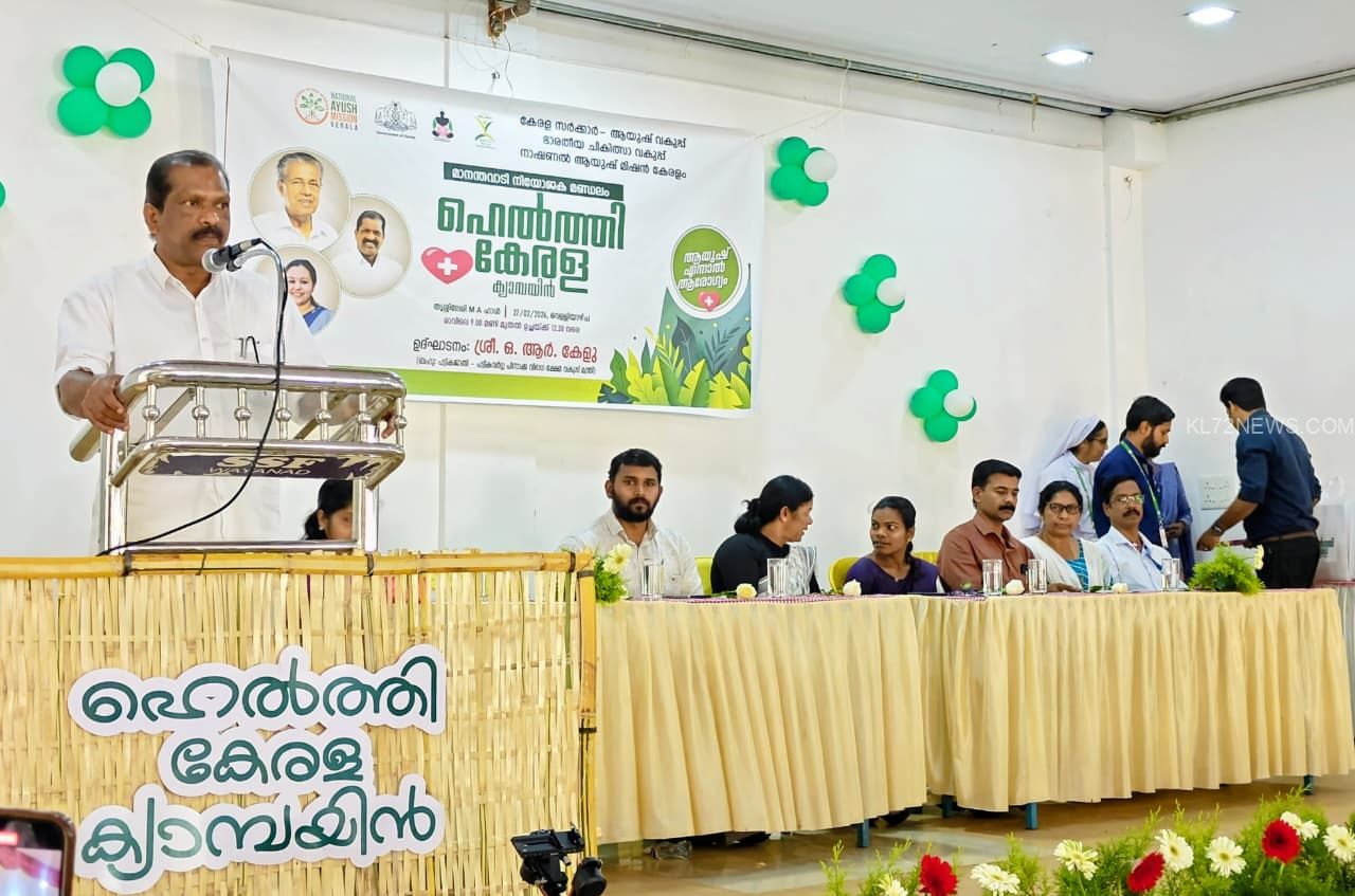 ഭാരതീയ ചികിത്സ വകുപ്പ്, നാഷണൽ ആയുഷ് മിഷൻ എന്നിവയുടെ ആഭിമുഖ്യത്തിൽ മാനന്തവാടി നിയോജക മണ്ഡലത്തിൽ തൃശ്ശിലേരി എം എ ഹാളിൽ വച്ച് ആയുർവ്വേദ മെഡിക്കൽ ക്യാമ്പ്, ജീവിത ശൈലീ രോഗ നിർണ്ണയം, നേത്ര പരിശോധന, ബഡ്സ് പാരഡൈസ് സ്കൂളിലെ വിദ്യാർത്ഥികളുടെ ബാൻ്റ് മേളം – യോഗാ പ്രദർശനം, ബോധവത്ക്കരണ ക്ലാസ്, ഹെൽത്തി ഫുഡ് എക്സ്പോ, ഹെൽത്ത് കാർഡ് വിതരണം തുടങ്ങിയ വ്യത്യസ്തങ്ങളായ പരിപാടികളോടു കൂടി ഹെൽത്തി കേരള ക്യാമ്പയിൻ സംഘടിപ്പിച്ചു.