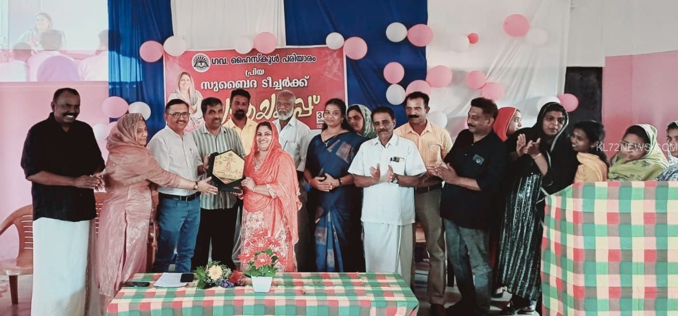 പരിയാരം: മൂന്നു പതിറ്റാണ്ടിലധികം അധ്യാപികയായി സേവനം ചെയ്ത് പരിയാരം ഗവൺമെന്റ് ഹൈസ്കൂളിൽ നിന്നു വിരമിക്കുന്ന എ സുബൈദ ടീച്ചർക്ക് അധ്യാപക രക്ഷാകർതൃ സമിതി യാത്രയയപ്പ് നൽകി. വാർഡ് മെമ്പർ ഷമീന ഷാജി ഉദ്ഘാടനം ചെയ്തു. പിടിഎ പ്രസിഡൻ്റ് എൻ അബ്ദുൽ നിസാർ അധ്യക്ഷത വഹിച്ചു. ഹെഡ്മിസ്ട്രസ് വി എം ശ്രീജ, എസ് എം സി ചെയർമാൻ വി അഷ്റഫ്, എംകെ ആലി, കെ എ മുജീബ്, കെ സി ഹാരിസ്, എം പി ടി എ പ്രസിഡൻ്റ് ലൈല ഇസ്മായിൽ, പിടിഎ വൈസ് പ്രസിഡന്റ് ഇബ്രാഹിം എ പി, വാണികൃഷ്ണ, വിനീത ജോസഫ്, ബുഷ്റ ഷമീർ, റസീന ഷൈജൽ, ധന്യ ജി , സജന പി കെ, ജോൺസൺ ഇ വി എന്നിവർ സംസാരിച്ചു. വിദ്യാർഥികളും രക്ഷിതാക്കളും പിടിഎ ഭാരവാഹികളും ഉപഹാരങ്ങൾ നൽകി.