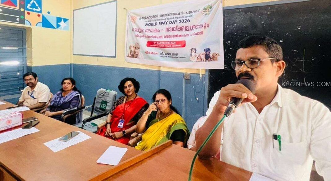 വൈത്തിരി :ഇന്ത്യൻ വെറ്ററിനറി അസോസിയേഷൻ, വെറ്ററിനറി കോളേജ് പൂക്കോടിന്റെ ആഭിമുഖ്യത്തിൽ, World SPAY DAY (ഓമന മൃഗങ്ങളുടെ വന്ധീകരണം) ആചരണത്തിന്റെ ഭാഗമായി വൈത്തിരി ഗവ. ഹയർ സെക്കൻഡറി സ്കൂളിലെ കുട്ടികൾക്കായി ‘നമ്മുടെ ലോകം – നായ്ക്കളുടെയും ” എന്ന വിഷയത്തിൽ ബോധവൽക്കരണ ക്ലാസ് സംഘടിപ്പിച്ചു . ഇന്ത്യൻ വെറ്ററിനറി അസോസിയേഷൻ പൂക്കോട് പ്രസിഡന്റ്‌, ഡോ. ബിന്ദ്യ ലിസ് എബ്രഹാം അധ്യക്ഷത വഹിച്ച ചടങ്ങിൽ സെക്രട്ടറി ഡോ. ഹർഷാദ് പട്കി സ്വാഗതമോതി. വൈത്തിരി പഞ്ചായത്ത്‌ പ്രസിഡന്റ്‌ സി.വി.രാജൻ ഉദ്ഘാടനം ചെയ്തു. സ്കൂൾ പ്രധാനാധ്യാപിക സി കെ പ്രിയരഞ്ജിനി മുഖ്യപ്രഭാഷണം നടത്തി. വൈത്തിരി പഞ്ചായത്ത്‌ ആരോഗ്യ – വിദ്യാഭ്യാസ സ്റ്റാൻഡിങ് കമ്മിറ്റി ചെയർപേഴ്സൺ എൽസി ജോർജ്, വാർഡ് മെമ്പർ ജെസ്‌ന എന്നിവർ ആശംസയർപ്പിച്ചു സംസാരിച്ചു. നൂറോളം കുട്ടികളെ പങ്കെടുപ്പിച്ചു നടത്തിയ ബോധവൽക്കരണ ക്ലാസ് വെറ്ററിനറി കോളേജ് അസിസ്റ്റന്റ് പ്രൊഫസർ ഡോ ജിത്ത് ജോൺ മാത്യു നയിച്ചു. വിവിധയിനം നായ്ക്കൾ, അവയുടെ സവിശേഷതകൾ, അരുമയായി പരിപാലിക്കുമ്പോൾ ശ്രദ്ധിക്കേണ്ട കാര്യങ്ങൾ, രോഗങ്ങൾ, പ്രതിരോധ കുത്തിവയ്പുകൾ, വന്ധീകരണ മാർഗങ്ങൾ, നായുടെ കടിയേറ്റാൽ ചെയ്യേണ്ട പ്രഥമ ശുശ്രൂഷ, തുടർന്നു തേടേണ്ട ചികിത്സാ ക്രമം, എന്നിവയോടൊപ്പം, നായ്‌ക്കൂട്ടങ്ങളെ ഒഴിവാക്കാൻ സ്കൂൾ പരിസരത്തെ മാലിന്യ നിർമാർജനത്തിന്റെ ആവശ്യകത എന്നിവയും വിദ്യാർഥികളുമായും അധ്യാപകരുമായും പങ്കുവച്ചു. വൈത്തിരി ജിഎച്ച്എസ്എസിന് ഐവിഎ പൂക്കോടിന്റെ സ്നേഹസമ്മാനമായി പഞ്ഞി, മരുന്ന്, ബാൻഡ് എയ്ഡ്, ലേപനങ്ങൾ, ഡെറ്റോൾ എന്നിവയടങ്ങുന്ന പ്രാഥമിക ചികിത്സാ കിറ്റ്, യൂണിറ്റ് പ്രസിഡന്റ്‌ ഡോ ബിന്ദ്യ പ്രധാനാധ്യാപികയ്ക്കു കൈമാറി. ക്ലാസിനോടൊപ്പം നടത്തിയ ക്വിസ് വേളയിൽ ശരിയുത്തരം നൽകിയ കുട്ടികൾക്ക് സമ്മാനങ്ങളും നൽകി. ഐവി എ പൂക്കോട് സ്റ്റേറ്റ് എക്സിക്യൂട്ടീവ് മെമ്പർ ഡോ സക്കറിയ ഇബ്രാഹിം നന്ദി പ്രകാശിപ്പിച്ചു