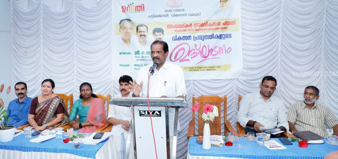 സംസ്ഥാനത്തെ തിരഞ്ഞെടുത്ത പട്ടികജാതി ഉന്നതികളിലെ അടിസ്ഥാന വികസന പ്രവർത്തനങ്ങൾ മെച്ചപ്പെടുത്തുകയാണ് സർക്കാർ ലക്ഷ്യമെന്ന് പട്ടികജാതി- പട്ടികവർഗ്ഗ- പിന്നാക്ക ക്ഷേമ വകുപ്പ് മന്ത്രി ഒ.ആർ കേളു പറഞ്ഞു. കൽപ്പറ്റ നിയോജക മണ്ഡലത്തിലെ പൊഴുതന അഞ്ചാം വാർഡിലെ ആനോത്ത് അംബേദ്കർ ഗ്രാമം പദ്ധതി ഉദ്ഘാടനം ചെയ്തു സംസാരിക്കുകയായിരുന്നു മന്ത്രി. പദ്ധതി പ്രകാരം ലഭ്യമായ തുക വകയിരുത്തി വൈദ്യുതീകരണം, റോഡ് നിർമ്മാണം, ടാങ്ക് – സംരക്ഷണ ഭിത്തി നിർമ്മാണം തുടങ്ങിയ അടിസ്ഥാന പശ്ചാത്തല സൗകര്യ വികസനമാണ് പദ്ധതിയിലൂടെ നടപ്പാക്കുന്നത്. ഇരുപത്തിയഞ്ചോ അതിലധികമോ പട്ടികജാതി വിഭാഗം കുടുംബങ്ങൾ താമസിക്കുന്ന ഉന്നതികളിൽ ഒരു കോടി രൂപ ചെലവഴിച്ച് നടപ്പാക്കുന്ന വികസന പ്രവർത്തനങ്ങളാണ് പദ്ധതിയിലുള്ളത്. പ്രവർത്തിയുടെ നിർമ്മാണ ചുമതല നിർമ്മിതി കേന്ദ്രക്കാണ്. വകുപ്പ് നടപ്പാക്കുന്ന വിവിധ വികസന പദ്ധതികൾ സംബന്ധിച്ച് ആളുകൾക്ക് അറിവുണ്ടാകണമെന്നും ഇതിനായി പ്രൊമോട്ടർമാർ ക്രിയാത്മകമായ പ്രവർത്തനങ്ങൾ നടപ്പാക്കാൻ ഇടപെടൽ നടത്തണമെന്നും മന്ത്രി പറഞ്ഞു. സംസ്ഥാനത്തെ 717 ഓളം പട്ടികജാതി – പട്ടികവർഗ്ഗ വിദ്യാർത്ഥികൾ വിദേശ രാജ്യങ്ങളിൽ ജോലിയിലും പഠനരംഗത്തും മികവ് പുലർത്തുന്നതായും മന്ത്രി കൂട്ടിച്ചേർത്തു. ആനോത്ത് മൂവട്ടി അങ്കണവാടിയിൽ നടന്ന പരിപാടിയിൽ അഡ്വ. ടി സിദ്ധിഖ് എം.എൽ.എ അധ്യക്ഷനായി. പട്ടികജാതി വികസന വകുപ്പ് ഡയറക്ടർ കെ. ഗോപാല കൃഷ്ണൻ, കൽപ്പറ്റ ബ്ലോക്ക് പഞ്ചായത്ത് പ്രസിഡന്റ് ചന്ദ്രിക കൃഷ്ണൻ, പൊഴുതന ഗ്രാമപഞ്ചായത്ത് പ്രസിഡൻ്റ് അനസ് റോസ്ന സ്റ്റെഫി, പൊഴുതന ഗ്രാമപഞ്ചായത്ത് വൈസ് പ്രസിഡന്റ് കെ.വി ബാബു, ക്ഷേമകാര്യ സ്റ്റാൻഡിങ് കമ്മിറ്റി അധ്യക്ഷ ഷാഹിന ഷംസുദീൻ, ജില്ലാപഞ്ചായത്ത് അംഗം എൻ.സി പ്രസാദ്, ഗ്രാമപഞ്ചായത്ത് അംഗം നിഖിൽ വാസു, ജില്ലാ പട്ടികജാതി വികസന ഓഫീസർ ജി. ശ്രീകുമാർ, ബ്ലോക്ക് പട്ടികജാതി വികസന ഓഫീസർ എ.പി നിർമ്മൽ, ഉദ്യോഗസ്ഥർ, പ്രെമോട്ടർമാർ, പ്രദേശവാസികൾ എന്നിവർ  പങ്കെടുത്തു