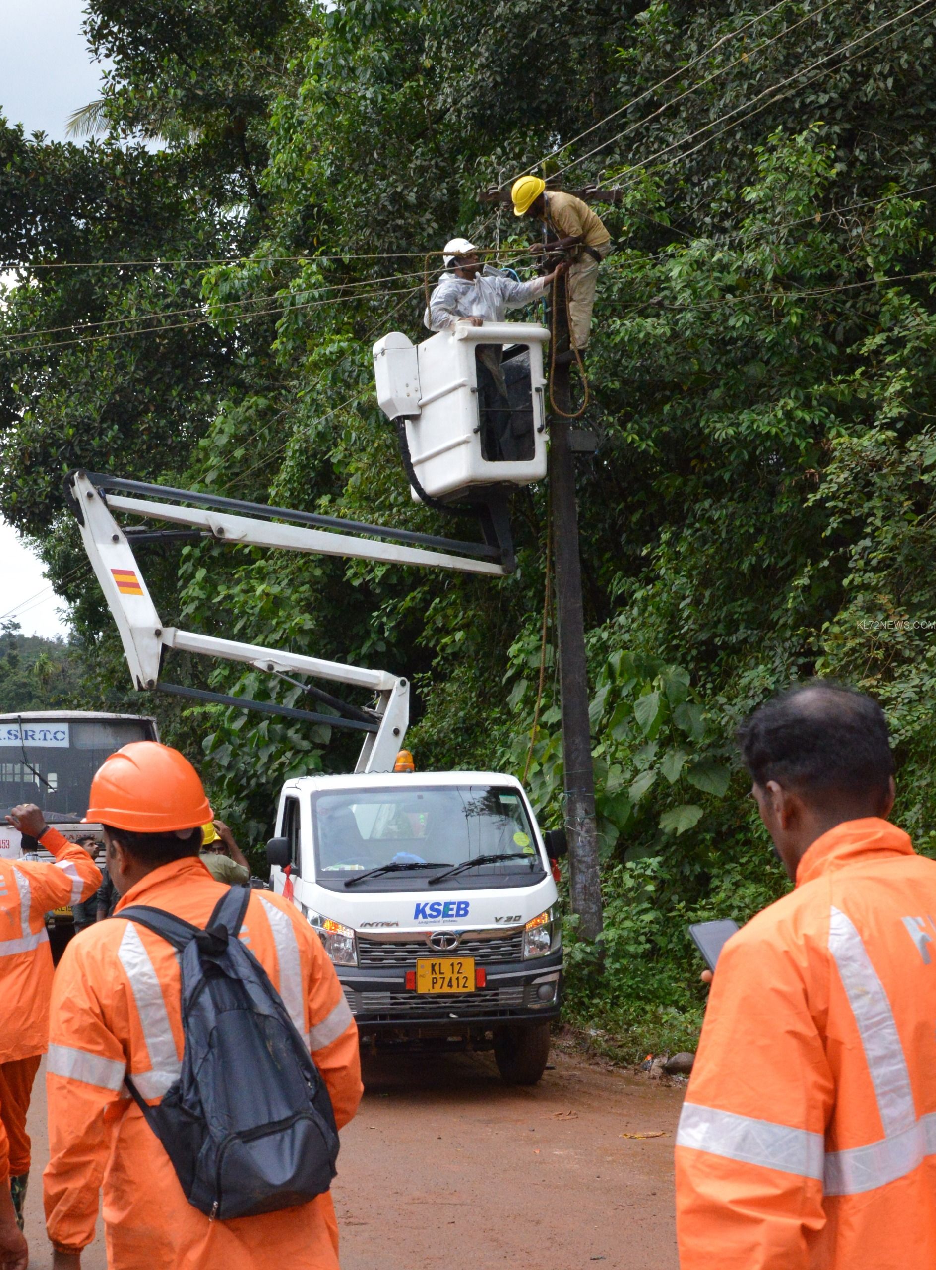 കനത്ത കാറ്റിലും പേമാരിയിലും മരം വീണും ലൈനുകള് പൊട്ടിയ വൈദ്യുത ലൈനുകള് പുനസ്ഥാപിക്കലായിരുന്നു ശ്രമകരമായ ദൗത്യം. ദുരന്തമേഖലയിലുള്ള ഹൈടെന്ഷന് ലൈനുകളെല്ലാം തകര്ന്നതോടെ ഈ പ്രദേശത്തേക്കുള്ള വൈദ്യുതി ബന്ധം നേരത്തെ തന്നെ വിഛേദിച്ചിരുന്നു. പൊട്ടി വീണ ലൈനുകള് നീക്കം ചെയ്തതിനാല് വാഹനങ്ങള്ക്കും രക്ഷാപ്രവര്ത്തകര്ക്കും ബുദ്ധിമുട്ടില്ലാതെ എത്താനായി.