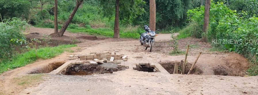 കേണിച്ചിറ: കുളം തകർന്ന് ഉണ്ടായ കുത്തൊഴുക്കിൽ തൂത്തിലേരി ഉന്നതിയിലേക്കുള്ള റോഡ് തകർന്നു. പൂതാടി പഞ്ചായത്ത് തൂത്തിലേരി നായര്കവല അങ്ങാടിശ്ശേരി റൂട്ടിൽ ആദിവാസി ഉന്നതിയിൽകൂടി കടന്ന് പോവുന്ന ഇൻ്റർലോക്ക് പതിച്ച റോഡാണ് വെള്ളത്തിൻ്റെ കുത്തൊഴുക്കിൽ ഒലിച്ച് പോയത്. തൊഴിലുറപ്പ് പദ്ധതിയിൽ വനത്തിൽ നിർമ്മിച്ച കുളത്തിൽ കനത്ത മഴയിൽ വെള്ളം നിറഞ്ഞതോടെയാണ് റോഡ് തകർത്ത് വെള്ളം ഒഴുകിയത്.