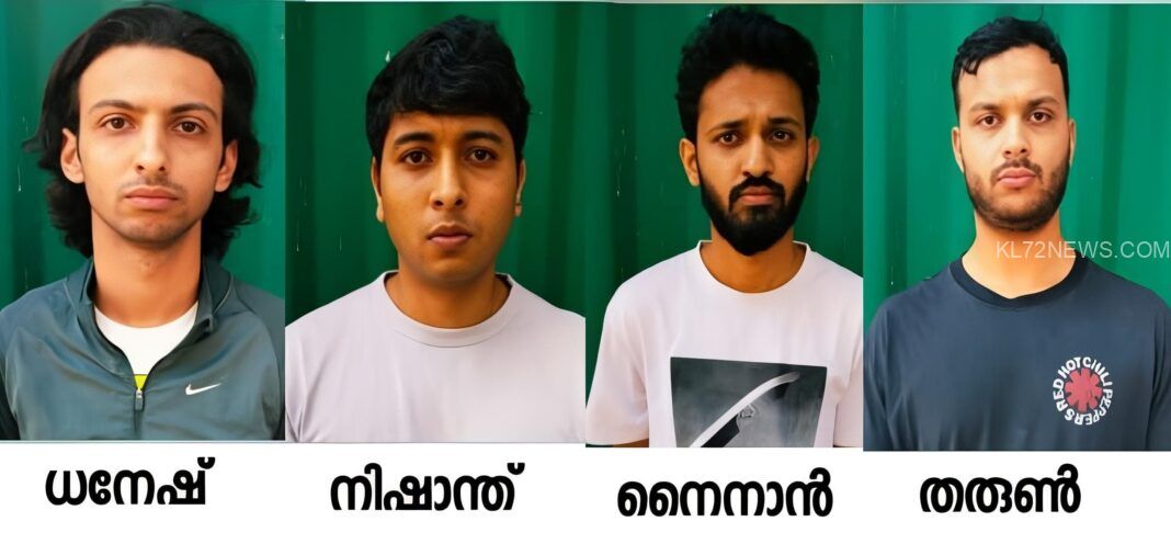 ബത്തേരി: കഞ്ചാവും ഹാഷിഷ് ഓയിലുമായി നാല് യുവാക്കൾ പി ടിയിൽ. ബാംഗ്ലൂർ സ്വദേശികളായ മഹാലക്ഷ്മിപുരം, എ എൻ. തരു ൺ(29), കോക്സ് ടൌൺ, ഡാനിഷ് ഹോമിയാർ(30), സദാനന്ദ നഗർ, നൈനാൻ അബ്രഹാം(30), കോഴിക്കോട് സ്വദേശി മൂലംപള്ളി, സനാ തനം വീട്ടിൽ, നിഷാന്ത് നന്ദഗോപാൽ (28) എന്നിവരെയാണ് ജില്ലാ പോ ലീസ് മേധാവിയുടെ ലഹരി വിരുദ്ധ സ്ക്വാഡും ബത്തേരി പോലീസും പിടികൂടിയത്. കഴിഞ്ഞ ദിവസം ഉച്ചയോടെ മുത്തങ്ങ തകരപ്പാടി പോ ലീസ് ചെക്ക് പോസ്റ്റിന് സമീപം നടത്തിയ പരിശോധനയിലാണ് ഇ വർ വലയിലാകുന്നത്. ഗുണ്ടൽപെട്ട ഭാഗത്തുനിന്നും ബത്തേരി ഭാഗ ത്തേക്ക് ഓടിച്ചു വരികയായിരുന്ന കെ എ 01 എം എക്സ് 0396 കാ റിൽ നിന്നുമാണ് 7.16 ഗ്രാം കഞ്ചാവും, 17.03 ഗ്രാം തൂക്കം വരുന്ന ഹാഷിഷ് ഓയിലും പിടിച്ചെടുക്കുന്നത്.