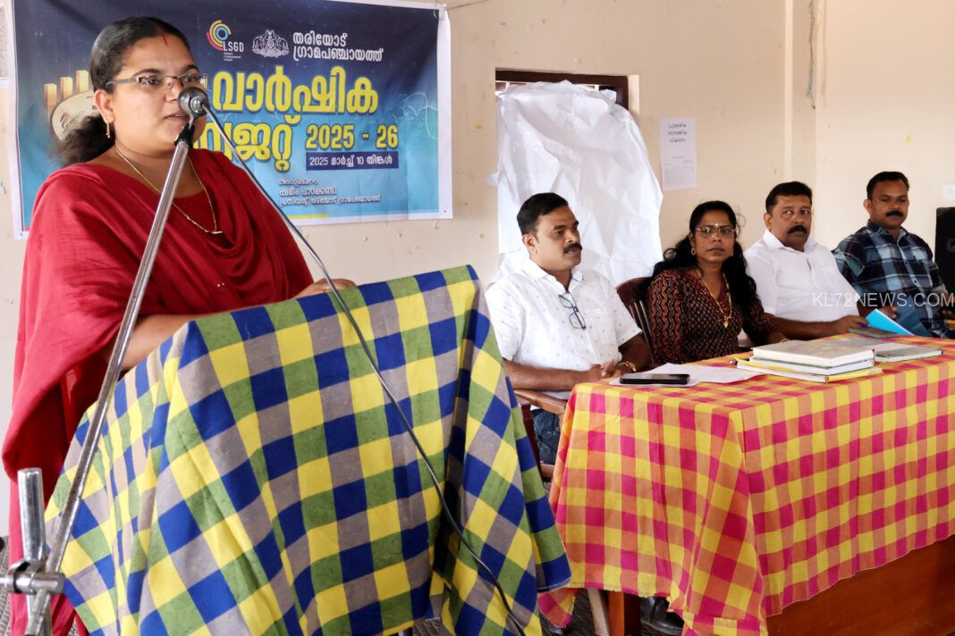 കാവുംമന്ദം: ഭവന നിർമ്മാണത്തിനും കാർഷിക മേഖലക്കും കായിക വികസനത്തിനും ഊന്നൽ നൽകി 18,10,42,392 രൂപ വരവും 17,84,61,690 രൂപ ചിലവും 25,80,702 രൂപ നീക്കിയിരിപ്പും വരുന്ന തരിയോട് ഗ്രാമപഞ്ചായത്തിൻ്റെ 2025 – 26 വാർഷിക ബജറ്റ് വൈസ് പ്രസിഡണ്ട് പുഷ്പ മനോജ് അവതരിപ്പിച്ചു. പ്രസിഡണ്ട് ഷമീം പാറക്കണ്ടി അധ്യക്ഷത വഹിച്ചു.