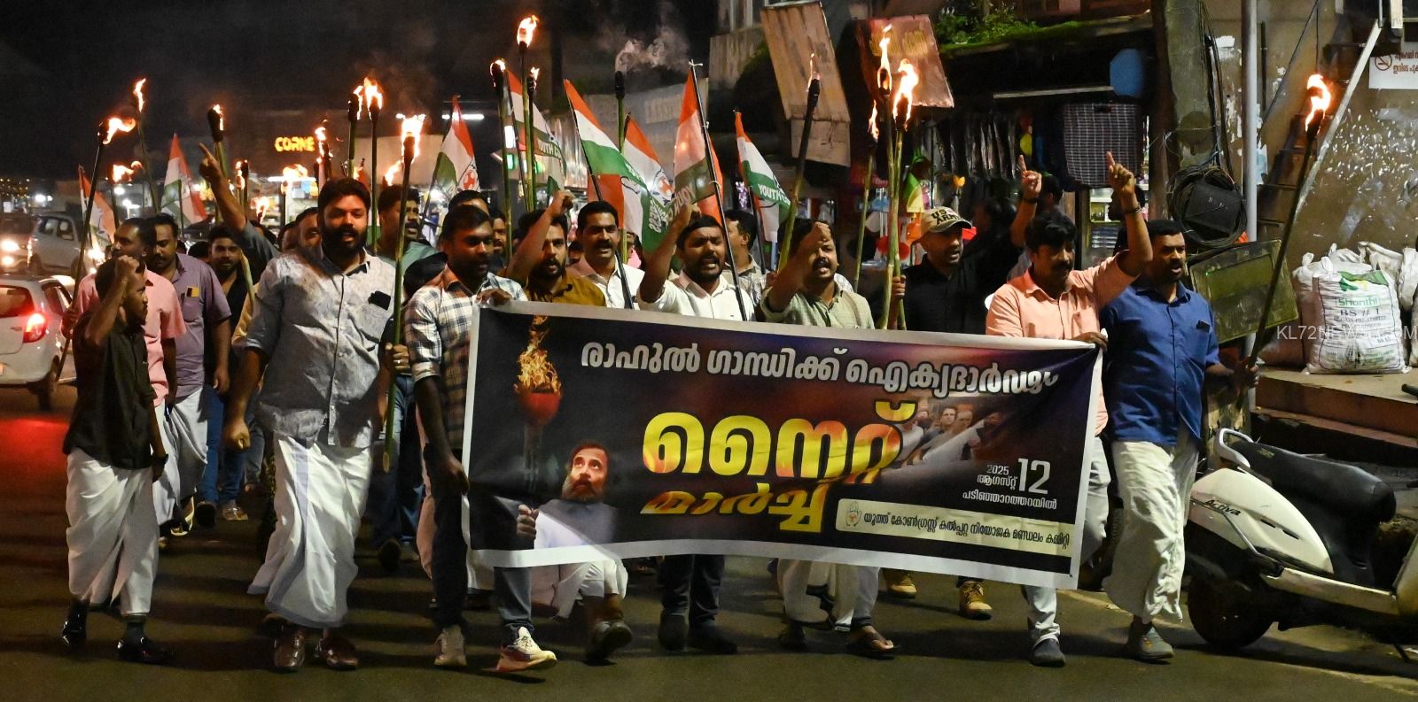 പടിഞ്ഞാറത്തറ : വോട്ടുമോഷണത്തിനെതിരെ രാഹുൽ ഗാന്ധി നയിക്കുന്ന പോരാട്ടങ്ങൾക്ക് ഐക്യദാർഢ്യം പ്രഖ്യാപിച്ചുകൊണ്ട് യൂത്ത് കോൺഗ്രസ് കൽപ്പറ്റ നിയോജകമണ്ഡലം കമ്മിറ്റിയുടെ നേതൃത്വത്തിൽ നൈറ്റ് മാർച്ച് സംഘടിപ്പിച്ചു.