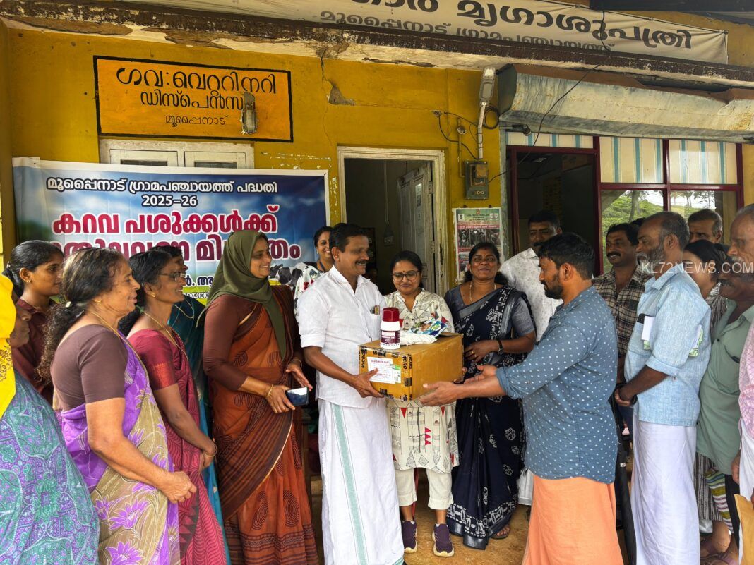 മൂപ്പൈനാട് മൃഗാശുപത്രിയിൽ ക്ഷീര കർഷകർക്കുള്ള ധാതുലവണ മിശ്രിതം വിതരണം ചെയ്തു. ഗ്രാമപഞ്ചായത്ത് പ്രസിഡന്റ് ആർ ഉണ്ണികൃഷ്ണൻ ഉദ്ഘാടനം ചെയ്തു. ഗ്രാമപഞ്ചായത്ത് വൈസ് പ്രസിഡന്റ് ഷൈബാൻ സലാം അധ്യക്ഷനായിരുന്നു. വെറ്ററിനറി ഡോ. ശർമ്മദ, ക്ഷേമകാര്യ സ്റ്റാന്റിങ് കമ്മിറ്റി ചെയർപേഴ്സൺ ഡയാന മച്ചാഡോ, ക്ഷീരസംഘം ഡയറക്ടർമാരായ മുജീബ്, ജോയ്മോൻ, ക്ഷീര കർഷകർ തുടങ്ങിയവർ പങ്കെടുത്തു