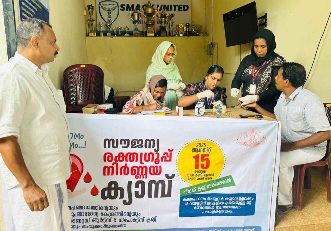 മടക്കിമല: സ്വാതന്ത്ര്യ ദിനത്തോട് അനുബന്ധിച്ച് മുട്ടിൽ ഗ്രാമ പഞ്ചായത്തും വാഴവറ്റ ഫാമിലി ഹെൽത്ത് സെൻ്ററും മടക്കിമല സ്മാക്ക് യുണൈറ്റഡ് ആർട്സ് ആൻഡ് സ്പോർട്സ് ക്ലബ്ബും സംയുക്തമായി നടത്തുന്ന രക്ത ഗ്രൂപ്പ് നിർണ്ണയ ക്യാമ്പ് മുട്ടിൽ ഗ്രാമപഞ്ചായത്ത് വൈസ് പ്രസിഡൻ്റ് അഷ്റഫ് ചിറക്കൽ ഉദ്ഘാടനം ചെയ്തു. ക്ലബ് പ്രസിഡൻ്റ് ത്വൽഹത്ത് മണലിൽ അധ്യക്ഷത വഹിച്ചു. ക്ലബ് സെക്രട്ടറി അരുൺ സ്വാഗതം പറഞ്ഞു. ജെപി എച്ച് എൻ നസീബ മുഖ്യപ്രഭാഷണം നടത്തി. മുനീർ തൊണ്ടിയിൽ ,ഷാഫി വടക്കേങ്ങര, ഷൗക്കത്ത് വാര്യൻ കുന്നത്ത് ,മുജീബ് പാറത്തോടുക ആശാവർക്കർമാരായ സക്കീന, താജുന്നിസ തുടങ്ങിയവർ ക്യാമ്പിന് നേതൃത്വം നൽകി.