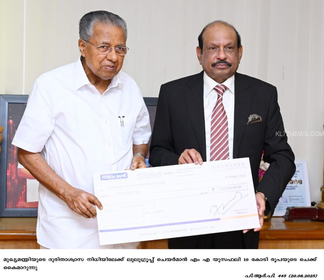 എം.എ. യൂസഫലി മുഖ്യമന്ത്രിയുടെ ദുരിതാശ്വാസ നിധിയിലേക്ക് 10 കോടി രൂപ സംഭാവന നൽകി Uncategorized August 21, 2025 Updated: August 21, 2025 By ONLINE Share FacebookTwitterPinterestWhatsApp - Advertisement - പ്രമുഖ വ്യവസായിയുംലുലു ഗ്രൂപ്പ് ചെയർമാനുമായ എം. എ. യൂസഫലിമുഖ്യമന്ത്രിയുടെ ദുരിതാശ്വാസ നിധിയിലേക്ക് 10 കോടി രൂപയുടെ ചെക്ക് കൈമാറി. സെക്രട്ടേറിയേറ്റിലെ മുഖ്യമന്ത്രിയുടെ ചേമ്പറിൽ വച്ചാണ് ചെക്ക് കൈമാറിയത്. ONLINE Share FacebookTwitterPinterestWhatsApp Latest news Uncategorized തൃശൂർ വെടിക്കെട്ടുപ്പുര അപകടത്തിന്റെ കാരണം കണ്ടുപിടിക്കണം; സുരക്ഷയുടെ കാര്യത്തിൽ വിട്ടുവീഴ്ച പാടില്ല, പി കെ കുഞ്ഞാലിക്കുട്ടി Anwar Sadiq - April 22, 2026 Uncategorized വാൽപ്പാറ അപകടം; ട്രാവലർ ഡ്രൈവറെ പെരിന്തൽമണ്ണ സ്വകാര്യ ആശുപത്രിയിലേക്ക് മാറ്റും Anwar Sadiq - April 22, 2026 Uncategorized മുണ്ടത്തിക്കോട് വെടിക്കെട്ടപകടം: ഒരാൾ കൂടി മരിച്ചു Anwar Sadiq - April 22, 2026 Uncategorized കാറ്റും മഴയും: കൃഷി നാശത്തിന് നഷ്ടപരിഹാരം വൈകരുത്-സ്വതന്ത്ര കർഷക സംഘം ONLINE - April 22, 2026 Related news Uncategorized തൃശൂർ വെടിക്കെട്ടുപ്പുര അപകടത്തിന്റെ കാരണം കണ്ടുപിടിക്കണം; സുരക്ഷയുടെ കാര്യത്തിൽ വിട്ടുവീഴ്ച പാടില്ല, പി കെ കുഞ്ഞാലിക്കുട്ടി Anwar Sadiq - April 22, 2026 Uncategorized വാൽപ്പാറ അപകടം; ട്രാവലർ ഡ്രൈവറെ പെരിന്തൽമണ്ണ സ്വകാര്യ ആശുപത്രിയിലേക്ക് മാറ്റും Anwar Sadiq - April 22, 2026 Uncategorized മുണ്ടത്തിക്കോട് വെടിക്കെട്ടപകടം: ഒരാൾ കൂടി മരിച്ചു Anwar Sadiq - April 22, 2026 Uncategorized കാറ്റും മഴയും: കൃഷി നാശത്തിന് നഷ്ടപരിഹാരം വൈകരുത്-സ്വതന്ത്ര കർഷക സംഘം ONLINE - April 22, 2026 LEAVE A REPLY Cancel reply Comment: Please enter your comment! Name:* Please enter your name here Email:* You have entered an incorrect email address! Please enter your email address here Website: Save my name, email, and website in this browser for the next time I comment.