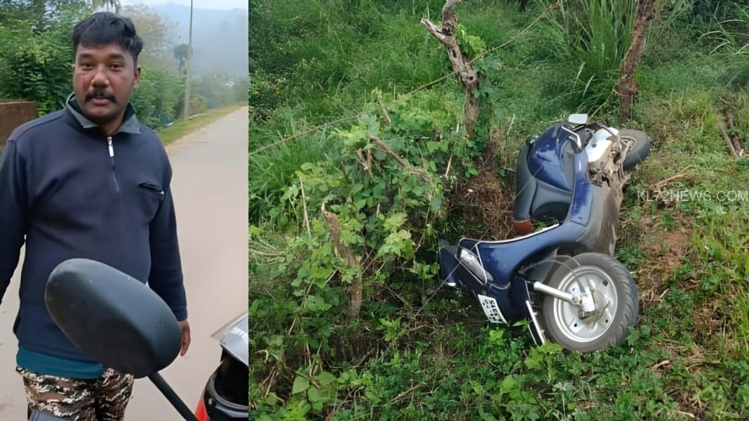 ഇന്ന് രാവിലെ ജോലിക്ക് പോകുന്ന വഴിയാണ് സംഭവം. കാട്ടാനയെ കണ്ട് സ്കൂട്ടർ ഉപേക്ഷിച്ച് സമീപത്തെ ഫെൻസിംഗിനുള്ളിലേക്ക് ഓടിക്കയറിയതിനാലാണ് ഷിബുവിന് ജീവൻ തിരിച്ചുകിട്ടിയത്. സ്ഥലത്തെത്തിയ വനപാലകർ ഇദ്ദേഹത്തെ മാനന്തവാടി മെഡിക്കൽ കോളേജിൽ പ്രവേശിപ്പിച്ചു. പരിക്ക് സാരമുള്ളതല്ല.
