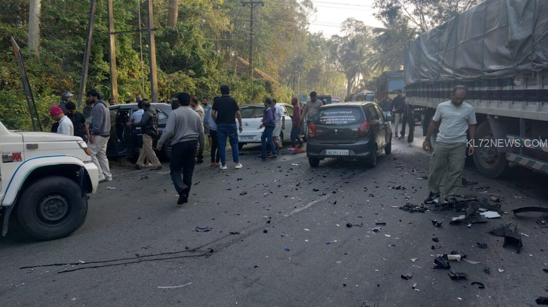 കൊയിലാണ്ടി സ്വദേശികളായ സബുലേഷ് (43), ഭാര്യ ശരണ്യ (34), മകൻ ഷാജി (10), മകൾ സാൻവി (6), സുഹൃത്ത് റബീഷ് (38) എന്നിവർക്കാണ് പരിക്കേറ്റത്.ഇന്ന് രാവിലെ 7.30-ഓടെയാണ് ബത്തേരി ബീനാച്ചിക്ക് സമീപത്താണ് അപകടം. പരിക്കേറ്റവരെ ബത്തേരിയിലെ സ്വകാര്യ ആശുപത്രിയിൽ പ്രവേശിപ്പിച്ചു. കൽപ്പറ്റ ഭാഗത്തേക്ക് പോയ ലോറിയും ബത്തേരി ഭാഗത്തേക്ക് വന്ന കാറുമാണ് അപകടത്തിൽപ്പെട്ടത്