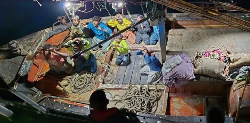 “വേഗത്തിലുള്ളതും കൃത്യവുമായ ഒരു രാത്രികാല ഓപ്പറേഷനിൽ, ഒരു ഇന്ത്യൻ കോസ്റ്റ് ഗാർഡ് അറബിക്കടലിൽ പട്രോളിംഗ് നടത്തുന്നതിനിടെ, 2026 ജനുവരി 14 ന് അന്താരാഷ്ട്ര സമുദ്ര അതിർത്തി രേഖയ്ക്ക് സമീപം ഇന്ത്യൻ ജലാതിർത്തിക്കുള്ളിൽ ഒരു പാകിസ്ഥാൻ മത്സ്യബന്ധന ബോട്ട് പിടികൂടി”- ഗുജറാത്ത് ഡിഫൻസ് പിആർഒ വിംഗ് കമാൻഡർ അഭിഷേക് കുമാർ തിവാരി എക്സിലെ പോസ്റ്റിൽ പറഞ്ഞു.