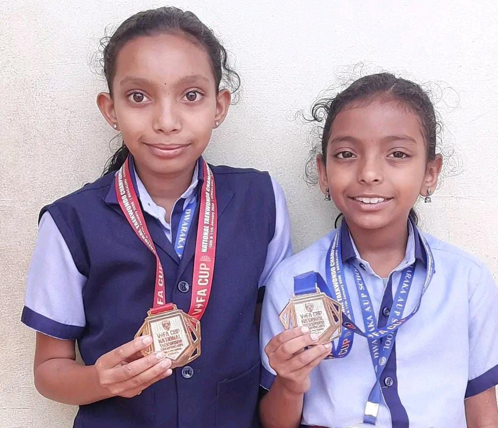 മാനന്തവാടി: ബംഗളൂരുവിൽ നടന്ന ദേശീയ തയ്ക്വാൻഡോ മൽസരത്തിൽ ദ്വാരക എ.യു.പി. സ്കൂളിലെ അമിൻ മരിയ എൽദോ യുപി വിഭാഗത്തിൽ ഒന്നാം സ്ഥാനത്തോടെ ഗോൾഡ് മെഡൽ നേടി. സഹോദരി എമിലിൻ മരിയ എൽദോ എൽ പി വിഭാഗത്തിൽ രണ്ടാം സ്ഥാനത്തോടെ സിൽവർ മെഡലും നേടി. വിജയികളെ സ്പോർട്സ് കൗൺസിലിൻ്റെ നേതൃത്വത്തിൽ അനുമോദിച്ചു.