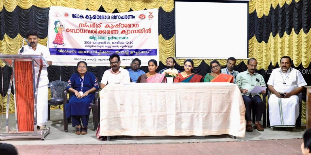ലോക കുഷ്ഠരോഗ ദിനാചരണത്തിൻ്റെയും സ്പർശ് ബോധവൽക്കരണ ക്യാമ്പയിനിൻ്റെയും ജില്ലാതല ഉദ്ഘാടനം പുൽപ്പള്ളി ജയശ്രീ ഹയർ സെക്കണ്ടറി സ്കൂളിൽ വച്ച് പുൽപ്പള്ളി ഗ്രാമ പഞ്ചായത്ത് വൈസ് പ്രസിഡണ്ട് ജോഷി ചാരുവേലിൽ നിർവ്വഹിച്ചു. ആരോഗ്യ വിദ്യാഭ്യാസ സ്ഥിരം സമിതി അദ്ധ്യക്ഷ ഷൈജ മഗേഷ് അദ്ധ്യക്ഷത വഹിച്ച ചടങ്ങിൽ ജില്ലാ ലെ പ്രസി ഓഫീസർ ഡോ ആര്യ വിജയകുമാർ മുഖ്യപ്രഭാഷണം നടത്തി.