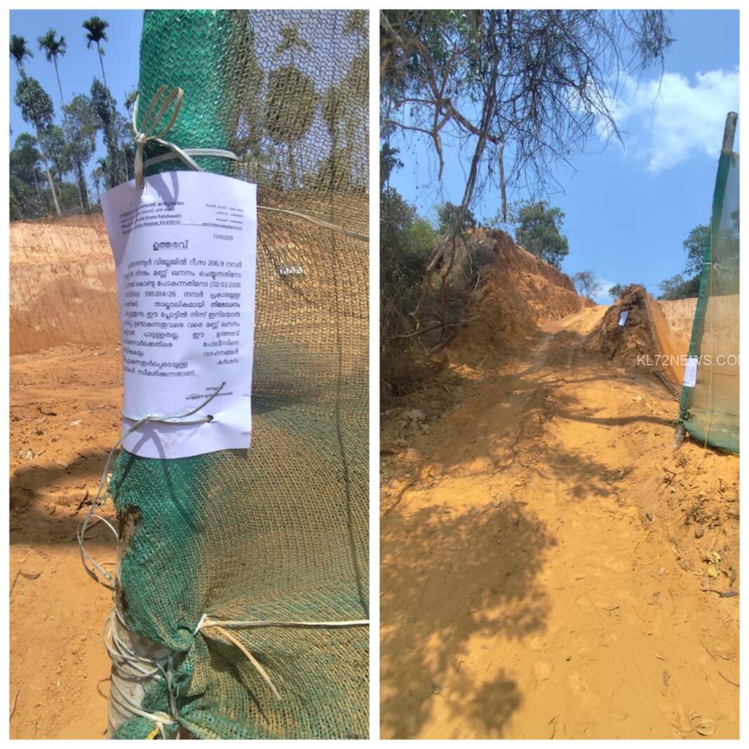 അനധികൃത മണ്ണെടുപ്പ് പഞ്ചായത്ത് സെക്രട്ടറി നിരോധിച്ചു.