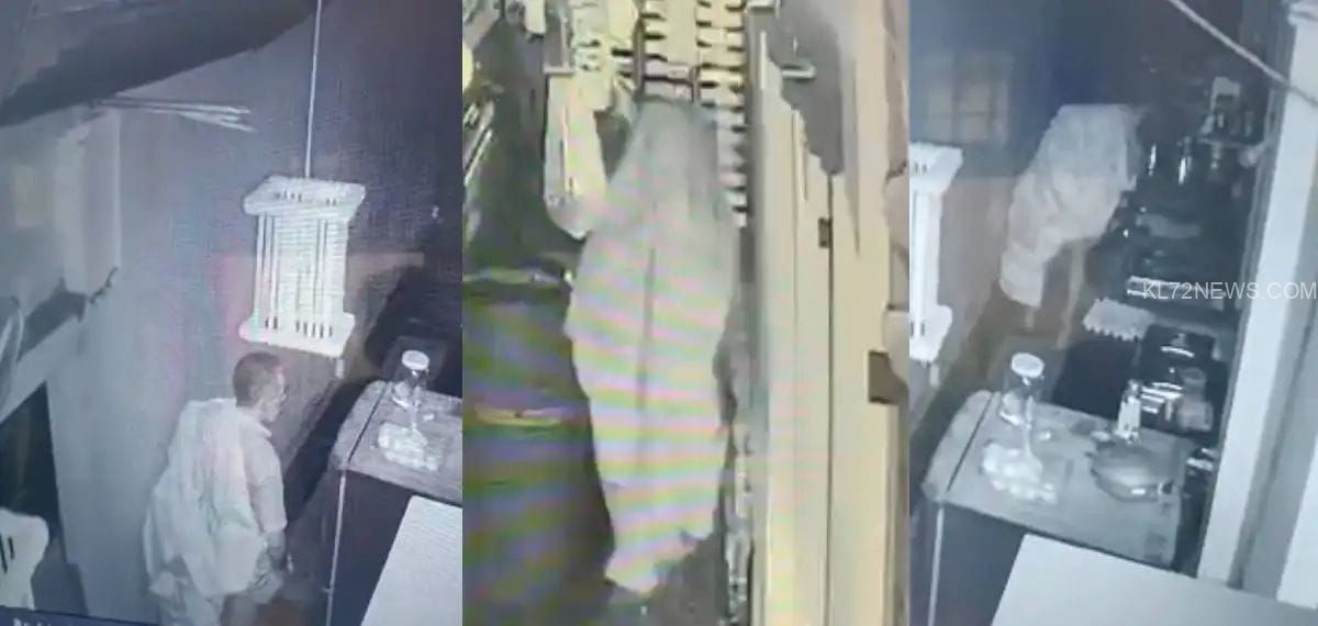 വെള്ള നിറത്തിലുള്ള ചാക്കുമായി എത്തിയ മോഷ്ടാവ് ഹോട്ടലിലെത്തി ആദ്യം ഫ്യൂസ് ഊരി. ശേഷം ചാക്കുകൊണ്ട് തലമറച്ച് കയ്യിലുണ്ടായിരുന്ന ടോർച്ചുമായി ഹോട്ടലിനകമെല്ലാം പരിശോധിച്ചു. പിന്നാലെ അടുക്കളയില് കയറി ഗ്യാസ് കുറ്റി എടുത്ത് കൊണ്ടുപോകുന്നതാണ് ദൃശ്യത്തിലുള്ളത്.