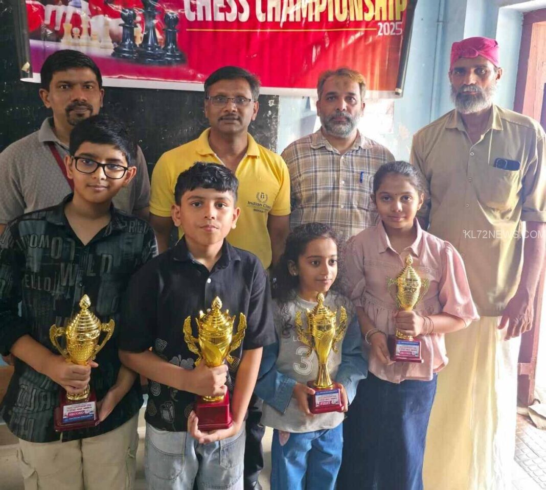 കൽപറ്റ:സ്റ്റേറ്റ് ചെസ് ടെക്നിക്കൽ കമ്മിറ്റിയും ഇന്ത്യൻ ചെസ് അക്കാദമിയും സംയുക്തമായി ബീനാച്ചി ഗവൺമെൻ്റ് ഹൈസ്കൂളിൽ നടത്തിയ അണ്ടർ – 11 സെലക്ഷൻ ചെസ് ചാമ്പ്യൻഷിപ്പിൽ ഓപ്പൺ വിഭാഗത്തിൽ അമ്മാർ ബിൻ തൻസീറും പെൺകുട്ടികളുടെ വിഭാഗത്തിൽ പി.പൗർണമിയും ചാമ്പ്യന്മാരായി . ആഷ്ലിൻ ജയിൻ , ദുർഗ. കെ. വി എന്നിവർ യഥാക്രമം രണ്ടാം സ്ഥാനം കരസ്ഥമാക്കി. നാലു പേരും സംസ്ഥാന അണ്ടർ-11 ചെസ് ചാമ്പ്യൻഷിപ്പിലേക്ക് വയനാട് ജില്ലയിൽ നിന്നു യോഗ്യത നേടി. സന്തോഷ് വി ആർ , രമേശ് ആർ, നാസർ ബീനാച്ചി, സുനിൽ എം കെ , ഷബീർ ജാൻ എന്നിവർ നേതൃത്വം നൽകി.