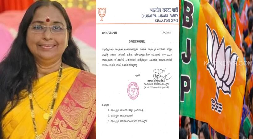 പാലക്കാട്ടെ എൻഡിഎ സ്ഥാനാർഥി ശോഭസുരേന്ദ്രനെതിരെ പരാതി നൽകിയ ബിന്ദു വിനയകുമാറിനെ സസ്പെൻഡ് ചെയ്ത് ബിജെപി. ആലപ്പുഴ ബിജെപി നോര്‍ത്ത് ജില്ലാ വൈസ് പ്രസിഡന്റായ ബിന്ദുവിനെ പ്രാഥമിക അംഗത്വത്തിൽ നിന്നാണ് സംസ്ഥാന അധ്യക്ഷൻ രാജീവ് ചന്ദ്രശേഖർ സസ്‌പെൻഡ് ചെയ്തിരിക്കുന്നത്. തുടർച്ചയായ അച്ചടക്ക ലംഘനം ചൂണ്ടിക്കാട്ടിയാണ് നടപടി.